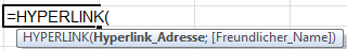 Microsoft Excel stellt für das Einfügen eines solchen Links einen Button im Excel Karteireiter Einfügen aber auch eine Excel Funktion namens Hyperlink zur Verfügung. Die Microsoft Excel Formel für das Einfügen des Links lautet nach der Anzeige in Excel: =HYPERLINK(Hyperlink_Adresse;[Freundlicher Name]). "Freundlicher Name" des Links ist dabei optional und kann genutzt werden, um nicht einen sehr langen Link zu sehen, sondern den Link als Beispiel mit "Hier klicken" anzeigen zu lassen.